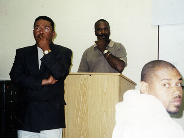 (l - r) Los Angeles Police Commissioner William Bratton, Reginald Brass, and Los Angeles County Sheriff Lee Baca.